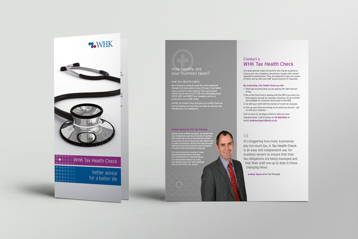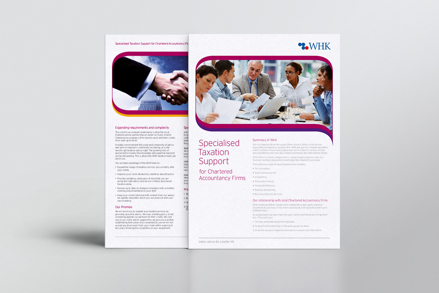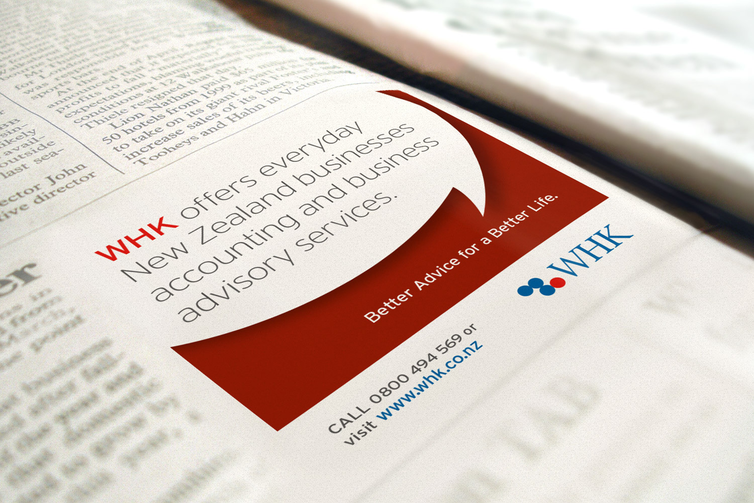 We worked with WHK (now Crown Horwath) and their marketing team to provide graphic design and art direction for various branded corporate materials and adverts for the New Zealand market.